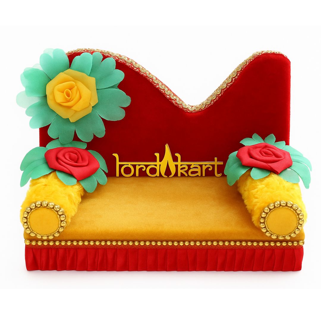 Adorn your divine Laddu Gopal with this luxurious Red Velvet Sinhasan, crafted to bring elegance and devotion to your home temple. Designed with premium velvet fabric, floral embellishments, and golden detailing, this Singhasan is the perfect throne for Bal Gopal, Krishna Ji, or small deity idols. Ideal for daily puja, Janmashtami, or festive occasions, this decorative Sinhasan adds a royal touch to your mandir décor while symbolizing love and devotion.