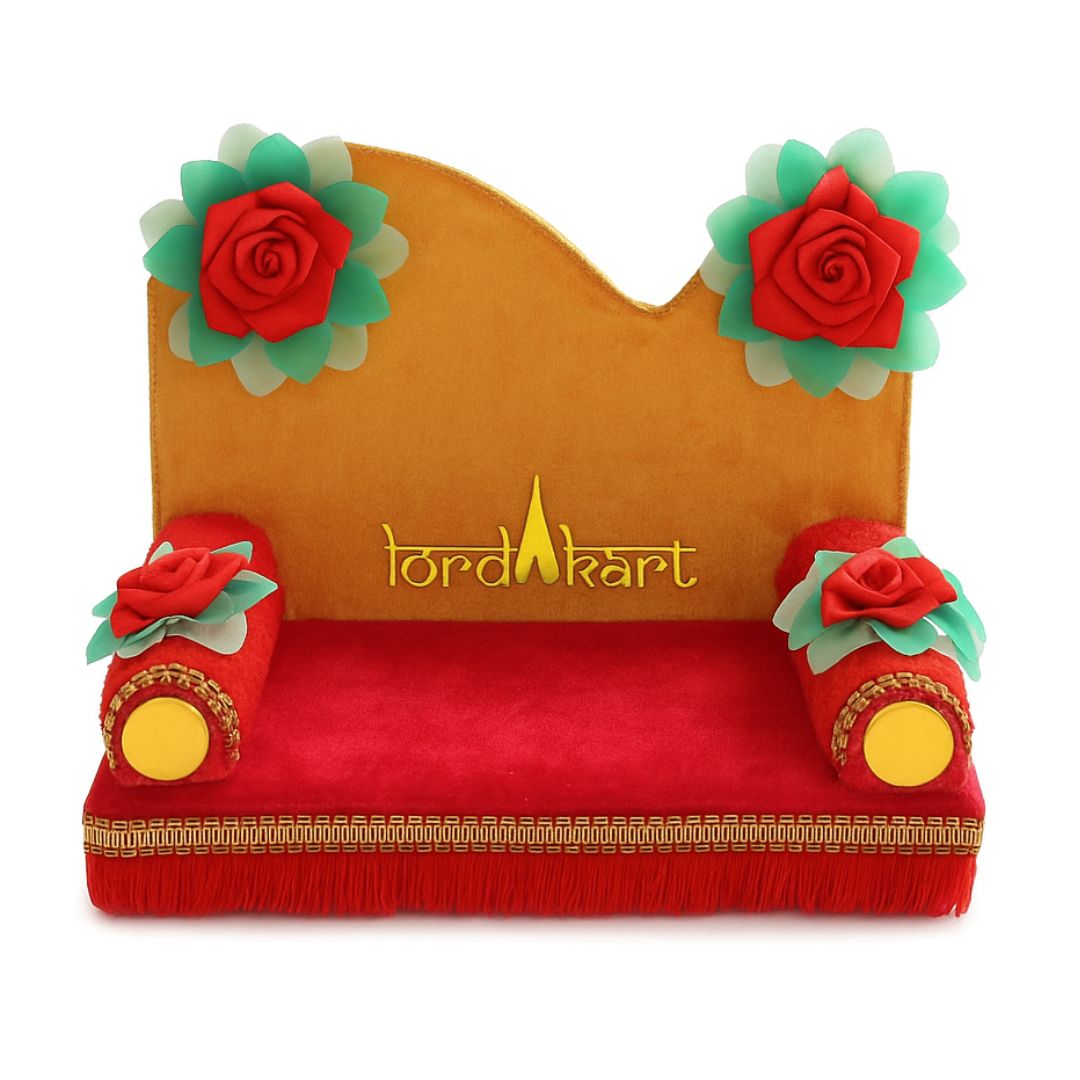 Give your beloved Bal Gopal / Laddu Gopal an elegant and divine seat with this beautifully designed Yellow Sinhasan. Crafted with vibrant red and yellow velvet, adorned with floral decorations, and finished with premium detailing, this Sinhasan enhances the spiritual aura of your mandir. Ideal for Krishna Janmashtami, daily puja rituals, or festive celebrations, this decorative Singhasan symbolizes devotion and adds a royal charm to your deity’s darbar.
