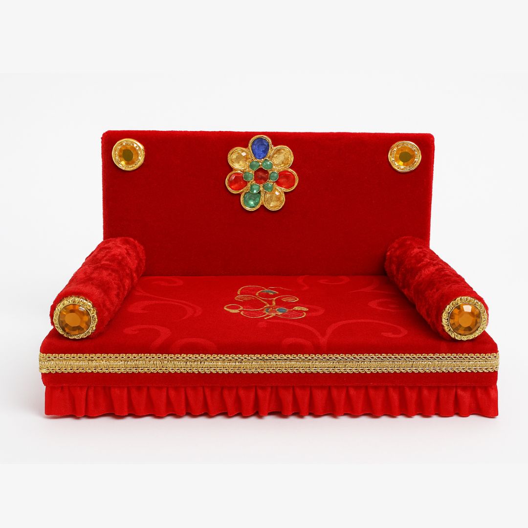 Celebrate the divine charm of Lord Krishna with this Beautiful Red Velvet Singhasan for Bal Gopal, specially crafted for Janmashtami and daily puja rituals. Made with premium quality velvet fabric, golden lace borders, and elegant floral decorations, this singhasan adds a royal touch to your home temple. Perfect for placing Laddu Gopal, Bal Krishna, and other small deities, this throne symbolizes devotion, purity, and festivity.