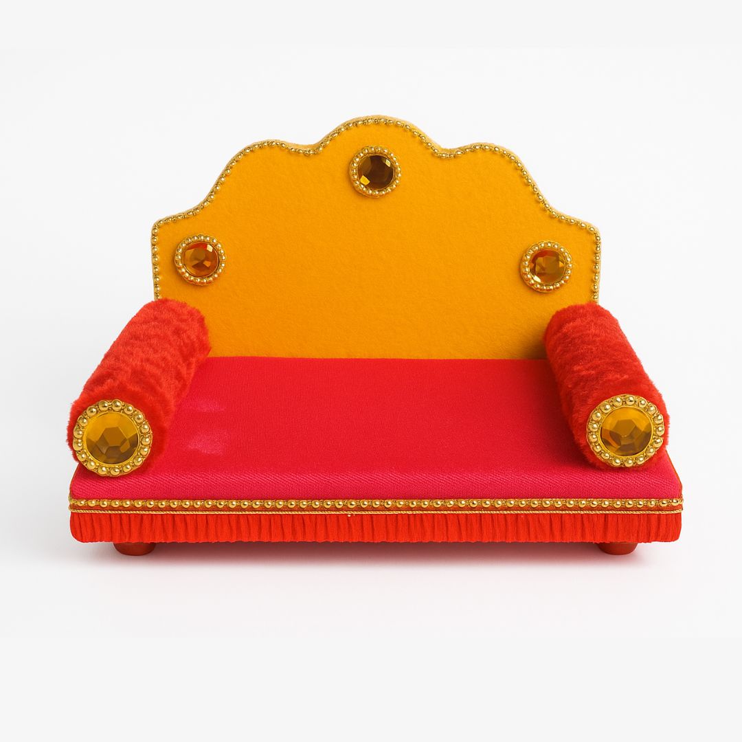 Adorn your Pooja Mandir with this beautifully handcrafted Laddu Bal Gopal Sinhasan, designed to give a divine throne to your beloved Krishna idol. Made with premium velvet fabric and elegant floral decorations, this decorative Krishna Singhasan enhances the spiritual charm of your home temple. Perfect for daily puja, Janmashtami celebrations, and festive occasions, it serves as both a devotional accessory and a stunning showpiece for your altar.
