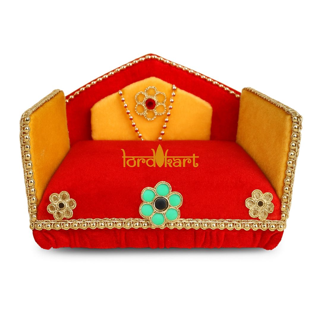 Bring divine elegance to your home temple with this Thakur Ji Red Sinhasan, specially designed for Laddu Gopal, Bal Krishna, and other deities. Crafted with premium velvet fabric, golden borders, and floral decorations, this decorative Krishna Singhasan enhances the beauty of your puja mandir. Perfect for Janmashtami, daily rituals, and festive celebrations, this Sinhasan symbolizes devotion, grace, and prosperity in your worship space.