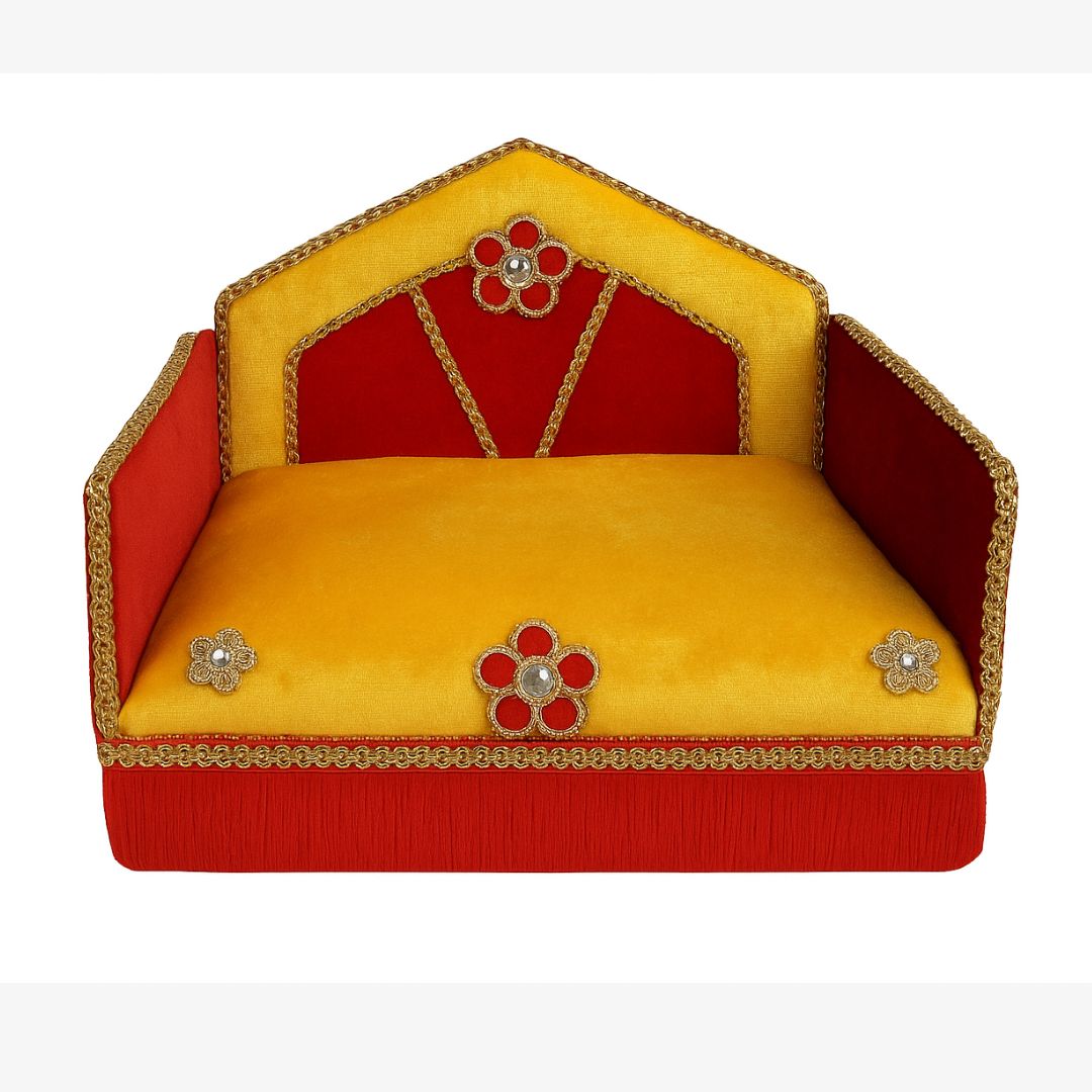 Bring divine elegance to your pooja mandir with this beautifully crafted Thakur Ji Yellow Sinhasan, designed especially for Laddu Gopal, Bal Krishna, and small deity idols. Made with premium velvet and floral embellishments, this decorative sinhasan enhances the charm of your temple space. Perfect for Krishna Janmashtami, daily puja rituals, and festive decorations, this Krishna throne adds a royal touch to your Thakur Ji’s darbar and symbolizes devotion with style.